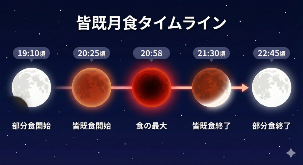 今回の皆既月食がバズる最大の理由は、**「タイミングの良さ」と「視認性の高さ」**にあります。