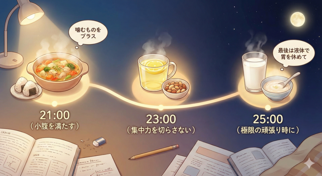 4. 【視覚ガイド】夜のタイムスケジュール別・差し入れチャート