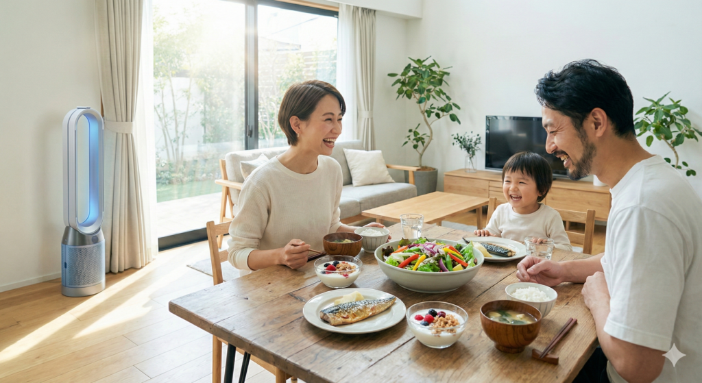 GPSと連動し、あなたが最寄り駅に着くと、自宅のAI家電が「戦闘モード」に突入。玄関には強力なエアシャワーが準備され、リビングは最大出力で清浄化されます。帰宅してドアを開けた瞬間、そこは世界で一番クリーンな聖域となっているのです。この安心感は一度味わうと手放せません。