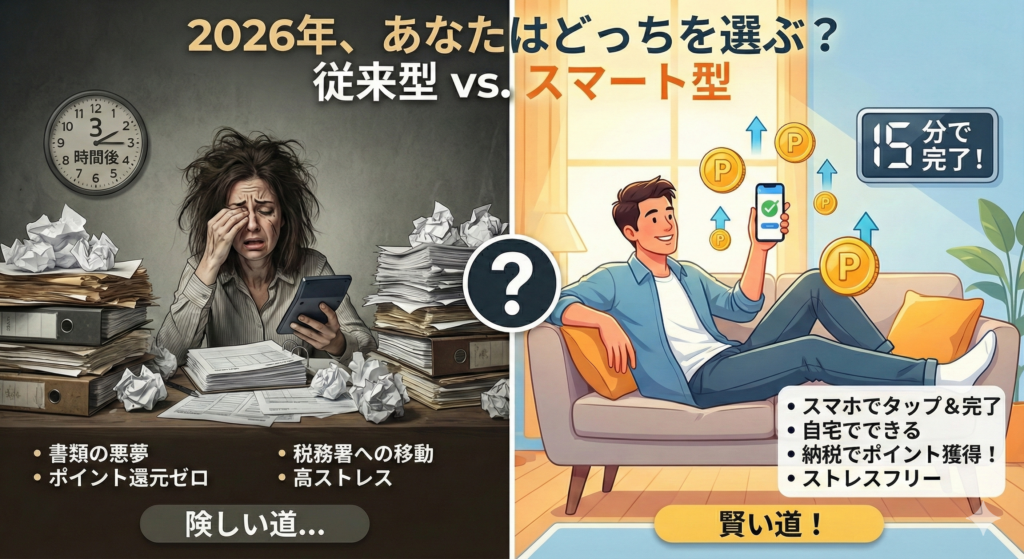 さあ、ここからが本題です。スマホ完結の最大のメリット、それは**「納税でポイ活ができる」**という点に尽きます。