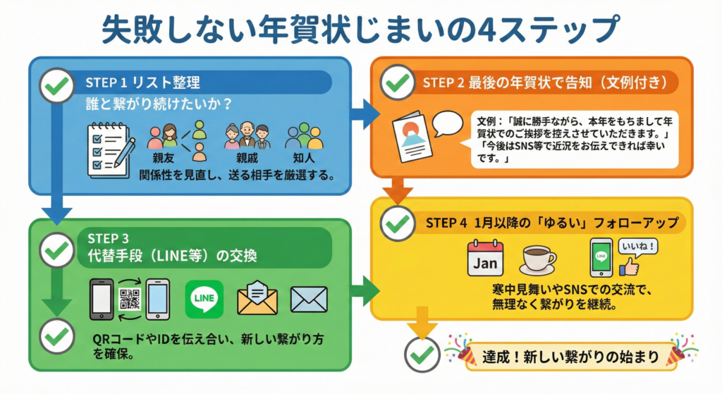 【第7章】視覚でチェック!「年賀状じまい」ステップ表