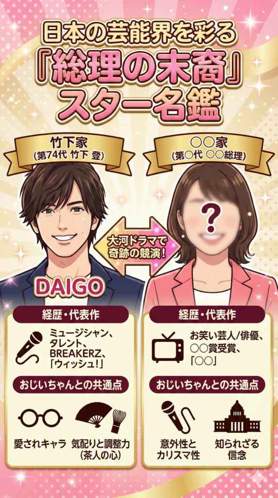 ※2024年時点での公式発表では、DAIGOさん以外の「総理の孫」の出演は確定していません。しかし、SNSやネットニュースでは、過去の大河ドラマの傾向や、現在の芸能界の相関図から、様々な憶測が飛び交っています。